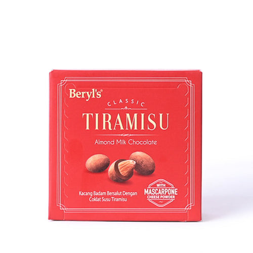 Delicious roasted almonds, coated in luxurious milk chocolate, and dusted in a delicious medley of coffee and cocoa. Beryl's premium chocolate coated almonds doubles up the decadence, with the taste of premium chocolate, almonds, and marvelous Tiramisu - the perfect add-on to every gift.