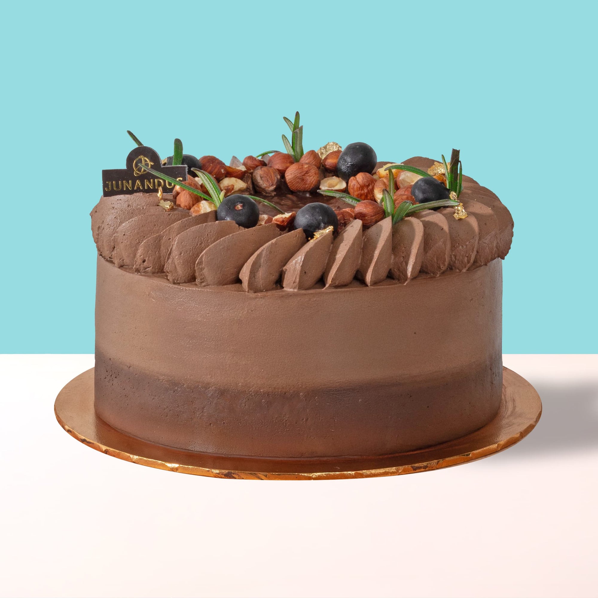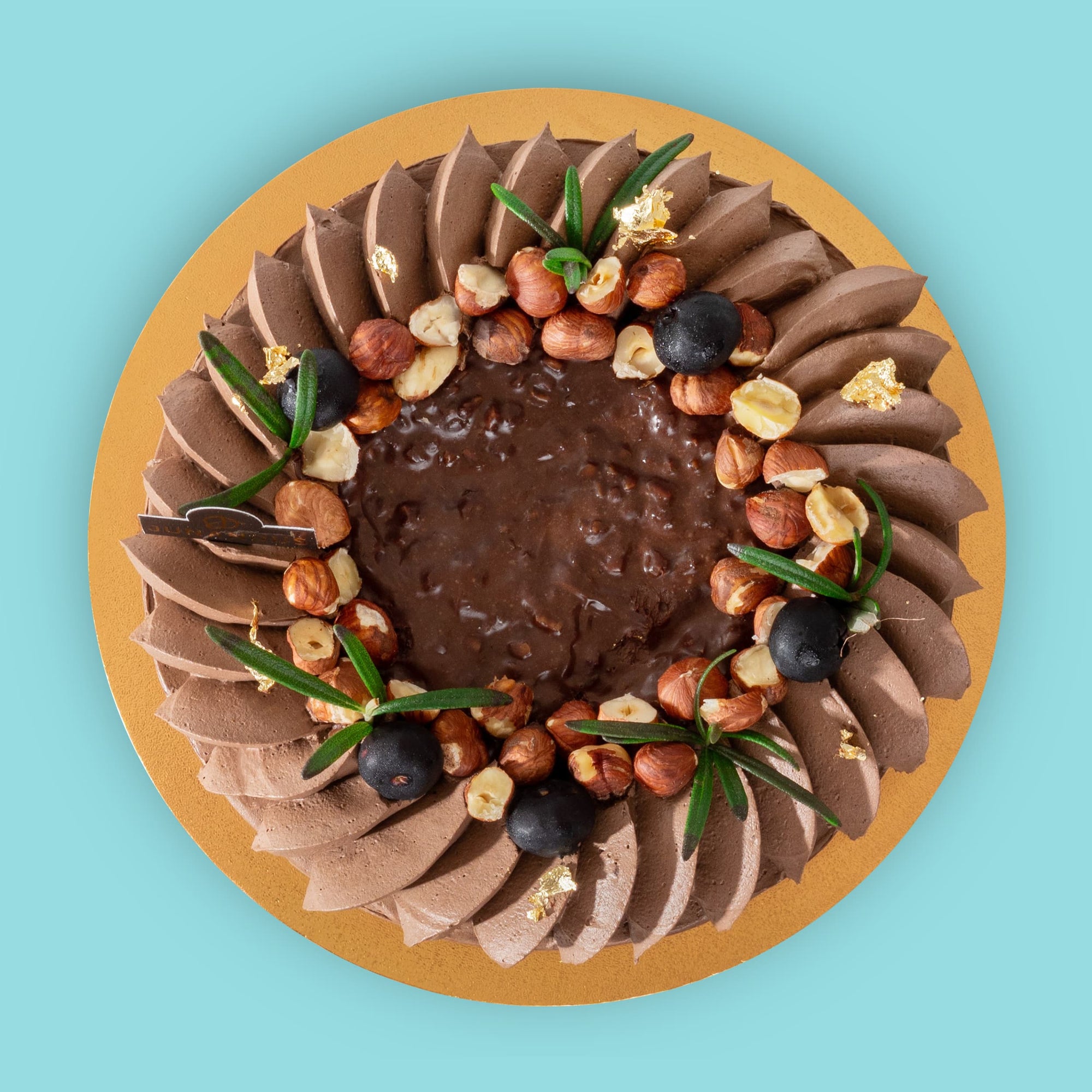 Pure chocolate luxury meets nutty perfection! Rich, airy dark chocolate chiffon layered with velvety Callebaut® chocolate yogurt cream and crunchy roasted hazelnuts, topped with rocher almond ganache and 24K gold flakes. Made with zero sugar added for bold, guilt-free indulgence. Send them this refined masterpiece that's smooth, crunchy, and utterly irresistible!