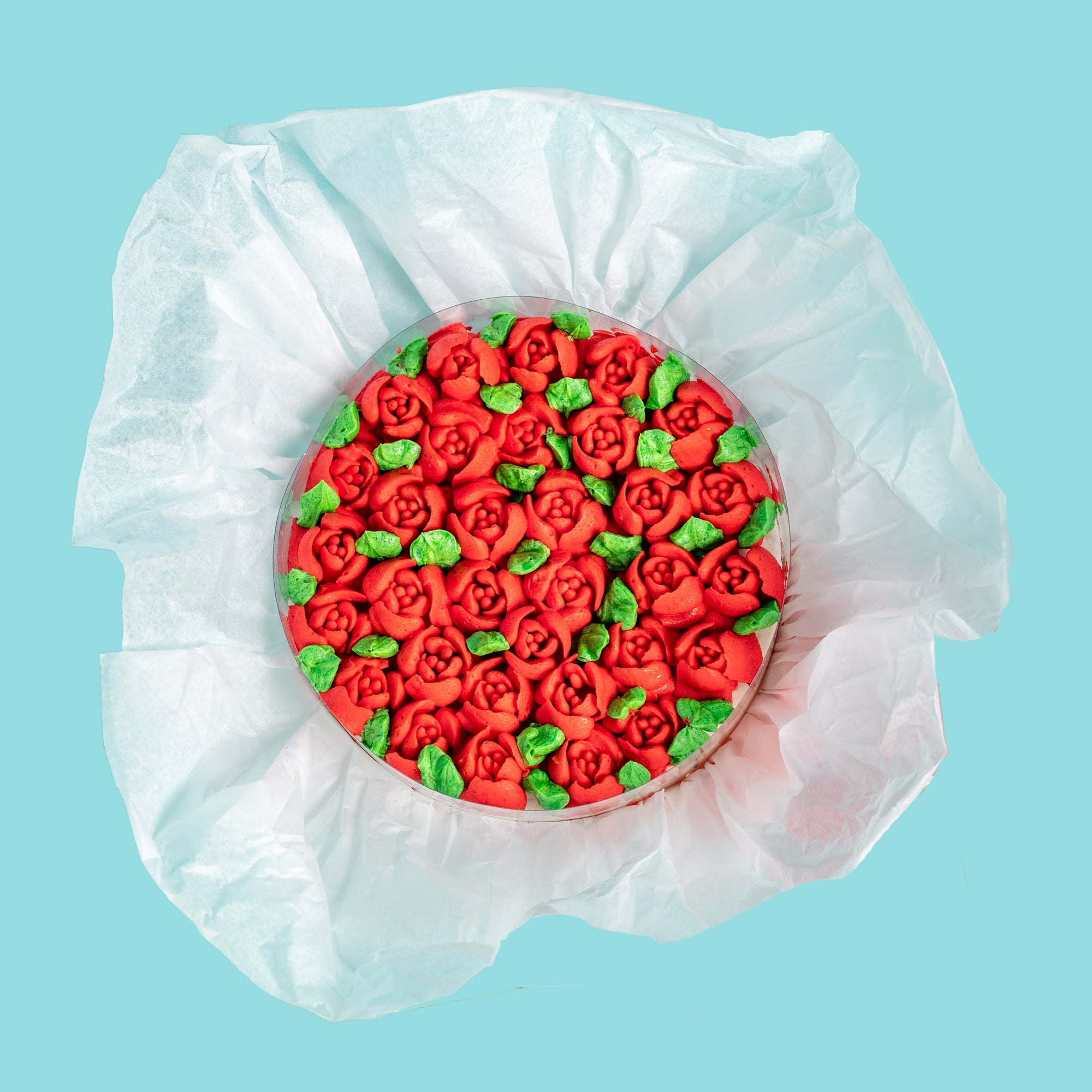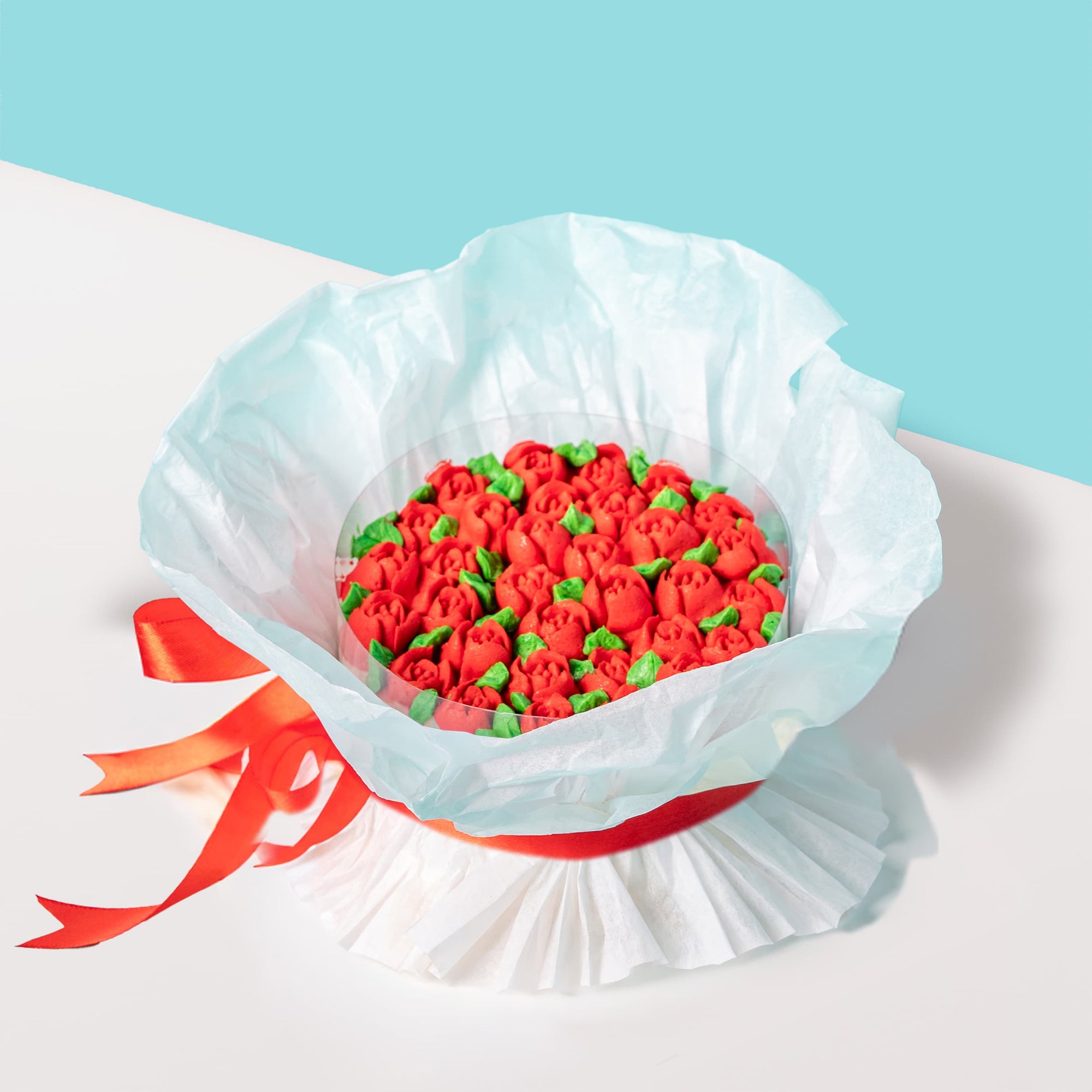 Romance in full bloom! This stunning red rose bouquet design delivers dreamy, elegant sophistication in every petal-perfect slice. Available in vanilla or moist chocolate, this Valentine's cake makes the ultimate romantic statement. Send them this gorgeous creation for Valentine's, anniversaries, or any moment deserving of endless love and unforgettable sweetness!