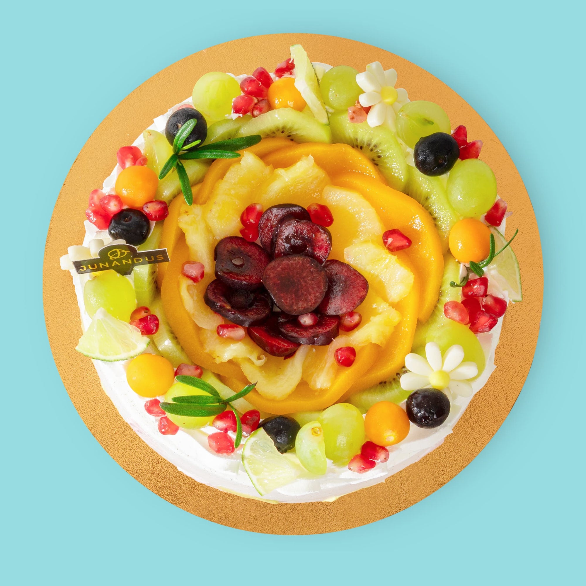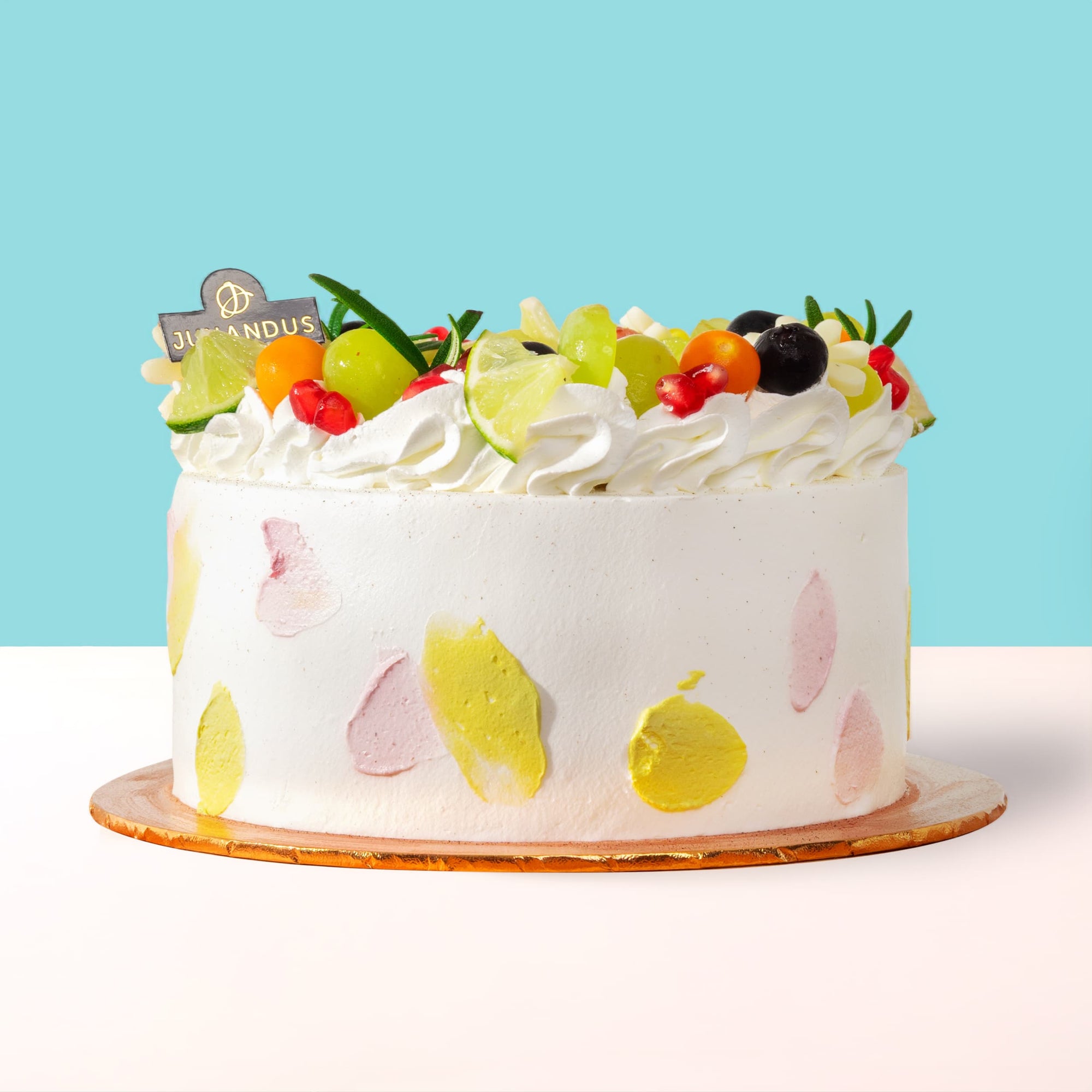 A kaleidoscope of fruity goodness in every slice! Light chiffon layers filled with luscious vanilla yogurt cream, juicy fruit chunks, and bouncy jelly, crowned with a vibrant rainbow of fresh fruits. Made with zero sugar added for naturally sweet indulgence that's guilt-free and gorgeous. Send them this refreshingly light creation that's as beautiful as it is delicious!